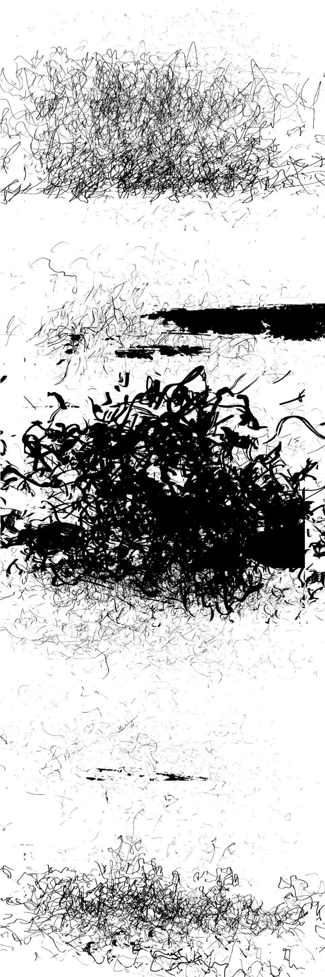 The interplay between a regular scheme of arrangement and the irregular marks is visible when the same route is followed on different occasions. In this case, the drawings associated with a given route are similar but not identical. The marks have a calligraphic quality, and the mechanism of arrangement suggests the formation of texts through the placing of characters and symbols in ordered combinations.